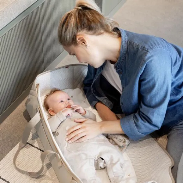 De Voksi Draagwieg – Carry Me – Seashell Sand Cream is een praktische en draagbare reiswieg die je kindje vanaf de geboorte een veilige en comfortabele plek biedt. Dankzij de zachte materialen en ademende 3D Mesh creëer je eenvoudig een rustig slaapplekje, zowel thuis als onderweg. De draagwieg is licht van gewicht en voorzien van stevige handgrepen, zodat je hem makkelijk overal mee naartoe neemt. De Carry Me is geschikt voor kindjes tot ca. 6-7 maanden (max. 9 kg) en past in de meeste kinderwagens. De reiswieg is waterafstotend, winddicht en behandeld met BIONIC-FINISH® ECO, waardoor hij ideaal is voor gebruik binnen én buiten. Alle materialen zijn OEKO-TEX® Standard 100, klasse 1 gecertificeerd en dus volledig veilig voor de gevoelige huid van je baby.