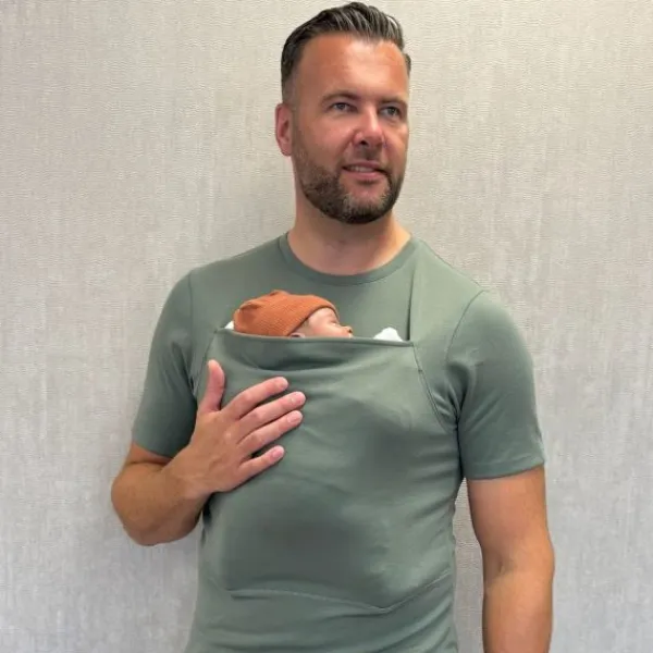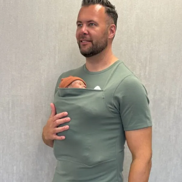 Met het Womboo Buidelshirt draag je je kindje in een handomdraai moeiteloos met je mee. Het buidelshirt lijkt op het eerste oog een normaal t-shirt, maar is eigenlijk multifunctioneel en super praktisch dankzij de buidel. Hierin draag je je kindje al vanaf de geboorte tot ongeveer 9 kg dicht tegen je aan, wat een vertrouwd en geborgen gevoel zal geven voor je kindje. Bovendien bevordert het de hechting met je kind, wat voor beide ouders net zo belangrijk is. Ook heeft het als voordeel dat wanneer je je kindje met je meedraagt, hij of zij rechtop zit en daardoor minder last heeft van krampjes en reflux. Het enige wat je hoeft te doen is het t-shirt aantrekken, de buidel open houden en je kindje er voorzichtig in laten zakken. Dus geen bevestiging met knopen of kliksystemen die ingewikkeld zijn, maar direct dicht tegen je aan en je hebt je handen vrij voor andere dingen. Na gebruik mag het buidelshirt zonder wasverzachter worden gewassen op 40 graden, maar is niet geschikt voor in de droger.