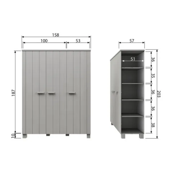 Woood Dennis Kledingkast Betongrijs 3-Deurs