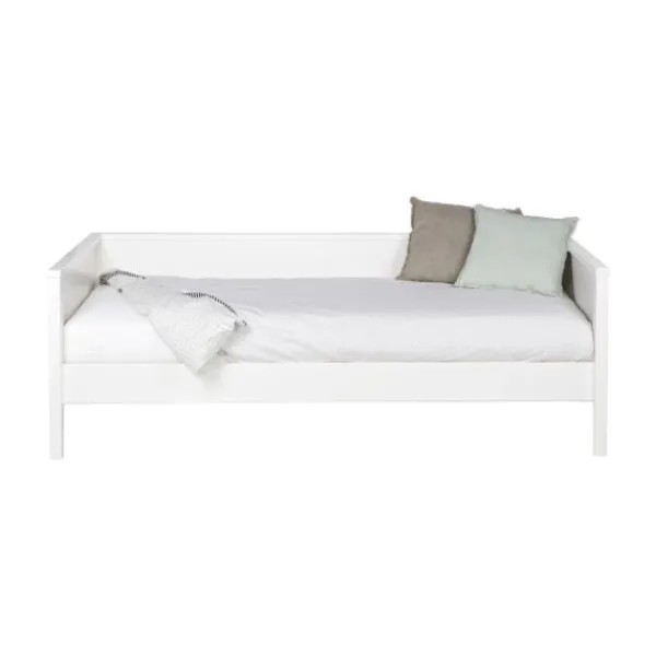 Ontdek de Woood Nikki bedbank in massief grenen, gelakt in wit, een stijlvolle en functionele oplossing voor kinderkamers en tieners. Deze bedbank (73 × 100 × 208 cm) sluit aan bij de complete Nikki-serie en biedt een rustiek en tijdloos design dankzij de geborstelde afwerking die de nerfaccenten van het grenenhout benadrukt. Let op: dit model wordt geleverd exlusief lattenbodem. De Nikki bedbank is ideaal voor kamers waar ruimte en multi‑functie belangrijk zijn. Dankzij de witte laklaag past hij moeiteloos in diverse interieurstijlen en kun je hem combineren met andere meubels uit de Nikki-collectie, zoals nachtkastje, bureau of kledingkast in wit of jadegroen. De bedbank is geschikt voor een standaard matrasmaat van 90 × 200 cm. Wij adviseren een lattenbodem (of rollende lattenbodem) 90 × 200 cm en een matras type Bonell (17 cm dik) of pocketvering (18 cm dik) voor optimaal slaapcomfort. Montage is eenvoudig dankzij de meegeleverde instructies en het pakketontwerp. Dankzij de FSC‑gecertificeerde grenen houtconstructie ben je verzekerd van duurzaamheid én een milieubewuste keuze. Met de Nikki bedbank creëer je een slimme en stijlvolle slaapplek die meegroeit met je kind.