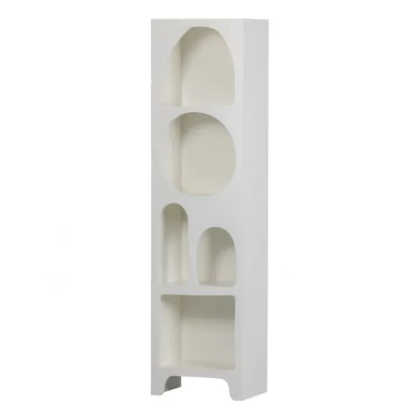 De Woood Caz Vakkenkast – Smal – Wit is dé perfecte oplossing voor wie op een stijlvolle manier accessoires wil presenteren. Deze smalle open kast heeft een speels design dankzij de organisch gevormde vakken en een moderne witte afwerking. Het unieke lijnenspel van de vakken zorgt voor een dynamisch geheel, waardoor Caz een echte eyecatcher wordt in elke ruimte. Perfect voor in de woonkamer, hal of slaapkamer! De kast is gemaakt van sterk multiplex en bestaat uit vijf open vakken. Met een hoogte van 180 cm, breedte van 48 cm en diepte van 32 cm neemt hij weinig ruimte in beslag, maar biedt toch volop mogelijkheden om je favoriete items tentoon te stellen. Elke plank heeft een maximaal draagvermogen van 15 kg. De kast wordt geleverd als eenvoudig bouwpakket inclusief duidelijke montagehandleiding.